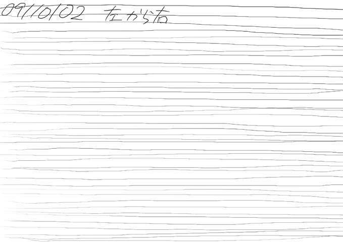 2009 / 10 / 03 ( Sat ) 左から、上から下・下から上・左から右・右から左の線・・・。 とりあえず練習はA4サイズの用紙と同じサイズでやって。ブログに乗せるのにはちょっと大きいので縮小しました~。 正直ブログってどのサイズが適切なのかいまいちわからん。ディスプレイサイズも様々だからなぁ。 あとこういった長い線を引く時のペンの持ち方がいまいちわからない。 普通字とか描く時って手の側面紙につけて描くと思うんだけどそれで直線引くと摩擦でかなりブレるんですよね。かといって側面を離すと力加減がかなりシビアなものにw ちなみに横線はほとんど側面を浮かせて描いてるんですが。縦線は上から下の場合側面つけてもそんな問題ないんですが、下から上に線を引く場合摩擦がひどいんですよねー。持ち方も研究せねばw ていうかむにゅうさんコミケ出るようになったんですね~。いつのまに・・・。ていうか、こぶ&むりさんの同人誌もやんでれ以降買ってなす・・・。見たらほしくなってしまったよw バイトすっかな~。もう残金五千円ないぜ!ニート生活という安らぎが音を立てて崩れてゆく! PR |